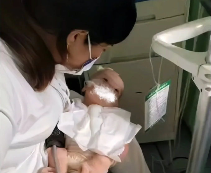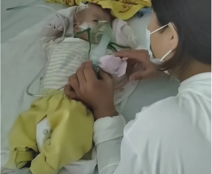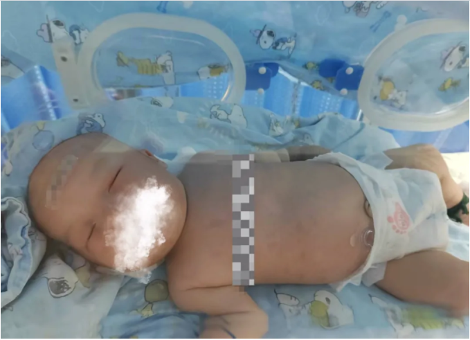 到医院时已经是晚上了,孩子脸和嘴都紫得厉害,肺动脉高压很高,直接进了新生儿科ICU(重症监护室)。当时医生找我们谈话:孩子感染很重,肺都白了,让我们做好两手准备,可能救得活,也可能救不活......